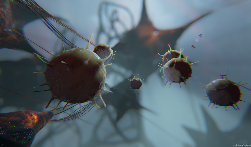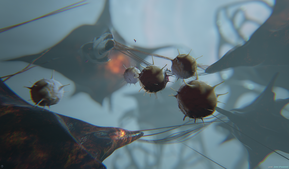 I was responsible for the white blood cell model and shader, antibody model and shader. I was responsible for the scene layout and lighting setup. I also did some blue print work and some simple GUI work